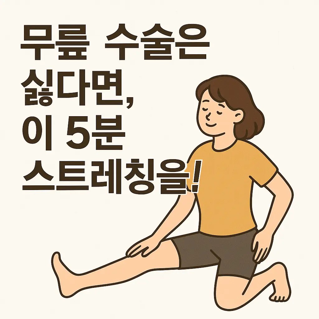 무릎 수술이 두렵다면? 매일 5분 스트레칭으로 무릎 건강을 지키는 방법을 알려드립니다. 무릎 통증 예방과 관절 보호를 위한 효과적인 루틴을 지금 확인해보세요!