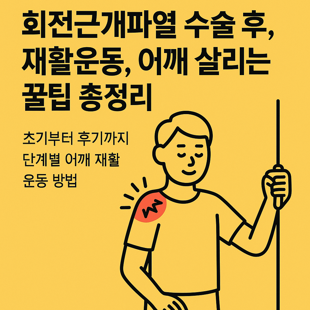 0~12주 이후 단계별 회전근개파열 운동법과 주의사항을 기억하시고, 하루하루 꾸준히 실천해보세요. 어깨는 분명 이전보다 더 건강해질 수 있습니다.